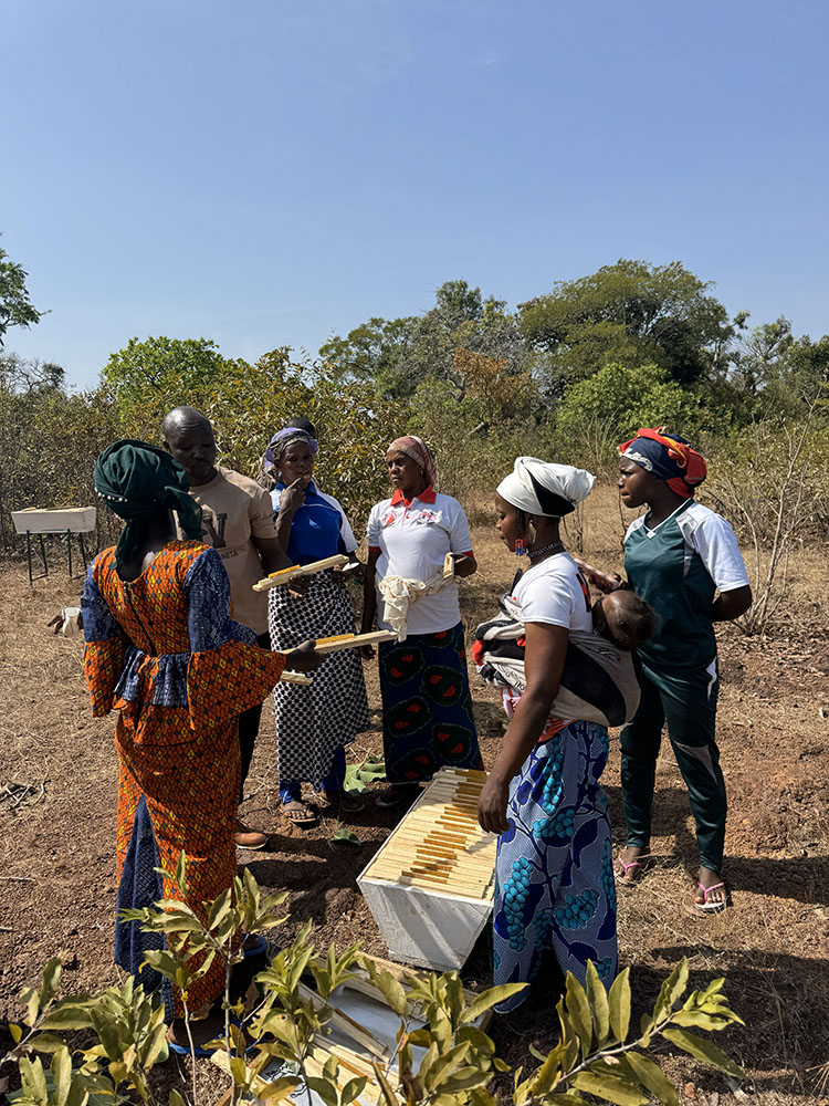 Neben der Erhöhung der Erträge ist der Verkauf der Bienenprodukte ein wichtiger Schlüssel zur Verbesserung der Einkommen der begünstigten Bienenzüchter:innen. Dazu dient die Gründung einer Imker:innen-Genossenschaft, die mehr Absatzmöglichkeiten schafft und sie so bessere Preise für ihre Waren erzielen lässt. Außerdem können Geräte zur Honiggewinnung teilweise gemeinschaftlich genutzt werden.