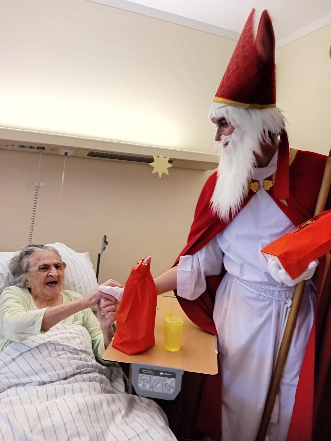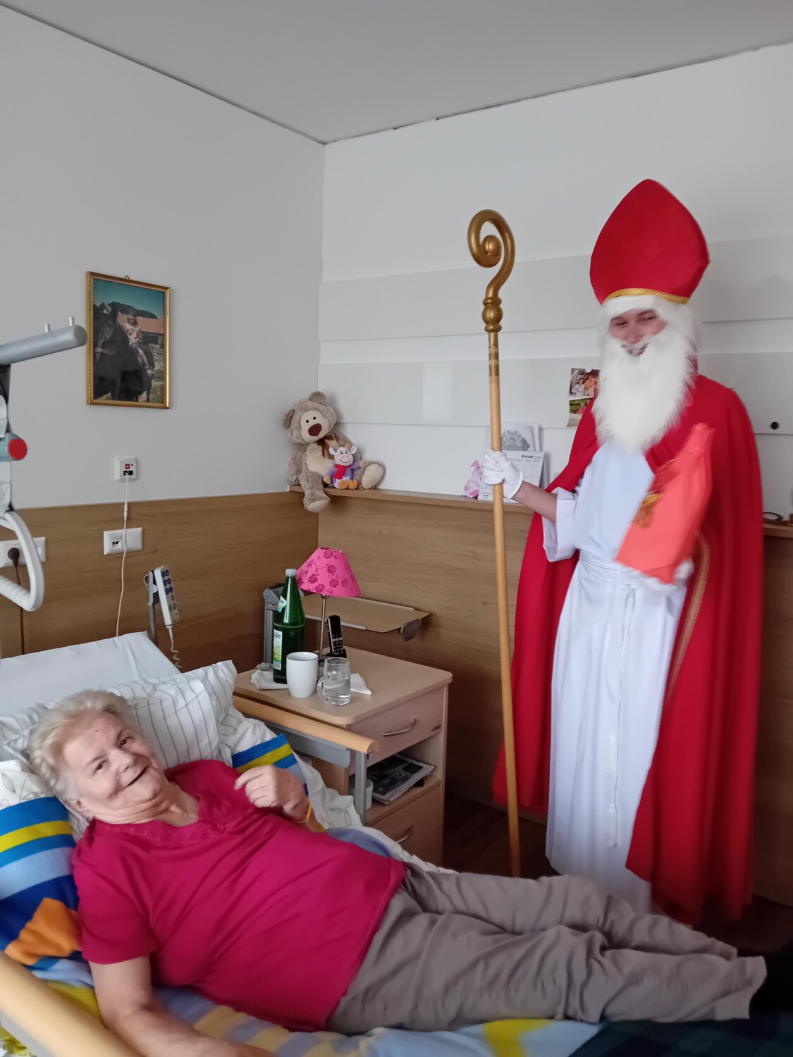 Ein Nikolausbesuch mit Herzenswärme – Freude am Pflegebett.