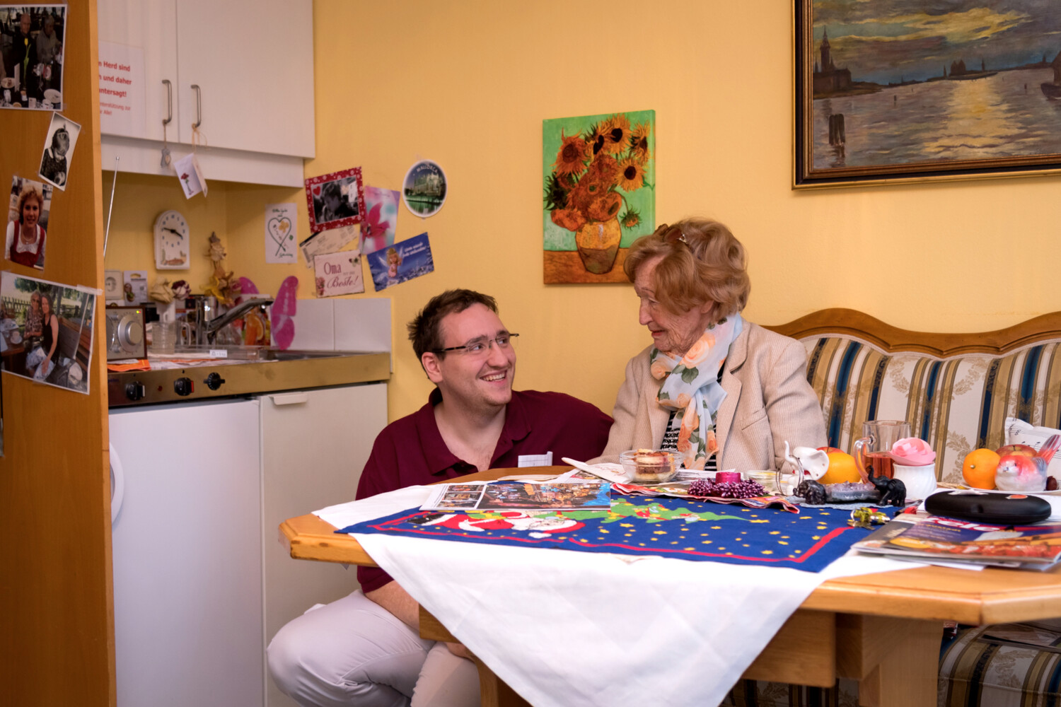 Unser qualifiziertes und engagiertes Pflege- und Betreuungspersonal vermittelt Geborgenheit, Zugehörigkeit und Sicherheit. Feste, Ausflüge und gemeinsame Aktivitäten sorgen für Abwechslung und Freude im Alltag. Die Angebote orientieren sich an den Fähigkeiten der Bewohner:innen.