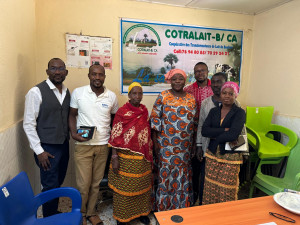 M. Mike Dera von der ÖJAB, rechts hinten, M. Jean-Bosco Dibouloni von Agrodev links, Mme Tall-Ouedraogo Alima, Leiterin der Cotralait-Molkerei, vierte von links und einige Mitglieder des Vereins.